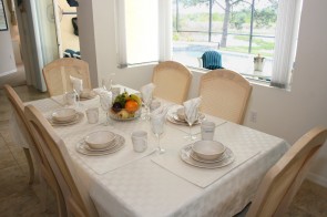 A particular feature of our villa is the south facing, screened, heated pool with multi-coloured LED lighting and an extra large sundeck area, incorporating a spacious covered lanai with luxury pool furniture, table and chairs. There is a half bathroom adjacent to the pool area making it ideal for children. Scenic views across a small natural lake and conservation area ensure that you are not overlooked from the rear. You can relax in comfort and style as you watch an abundance of Florida wildlife from the privacy of your own private pool area!!