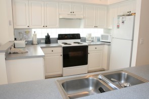 The kitchen is adjacent to the dining area and has ample cooking utensils, pots, pans, dishes, cutlery, crockery and glassware as well as a fridge freezer, with ice making facility, cooker, dishwasher, microwave, toaster, coffee maker, food mixer and garbage disposal unit. A telephone is installed which currently provides for limited free calls – on a local, national and international basis.